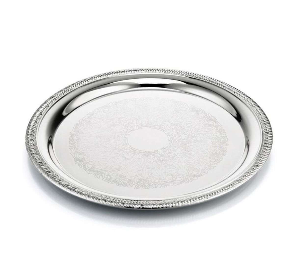 Silver tray measuring 35cm. Perfect for serving drinks, canapes or desserts.