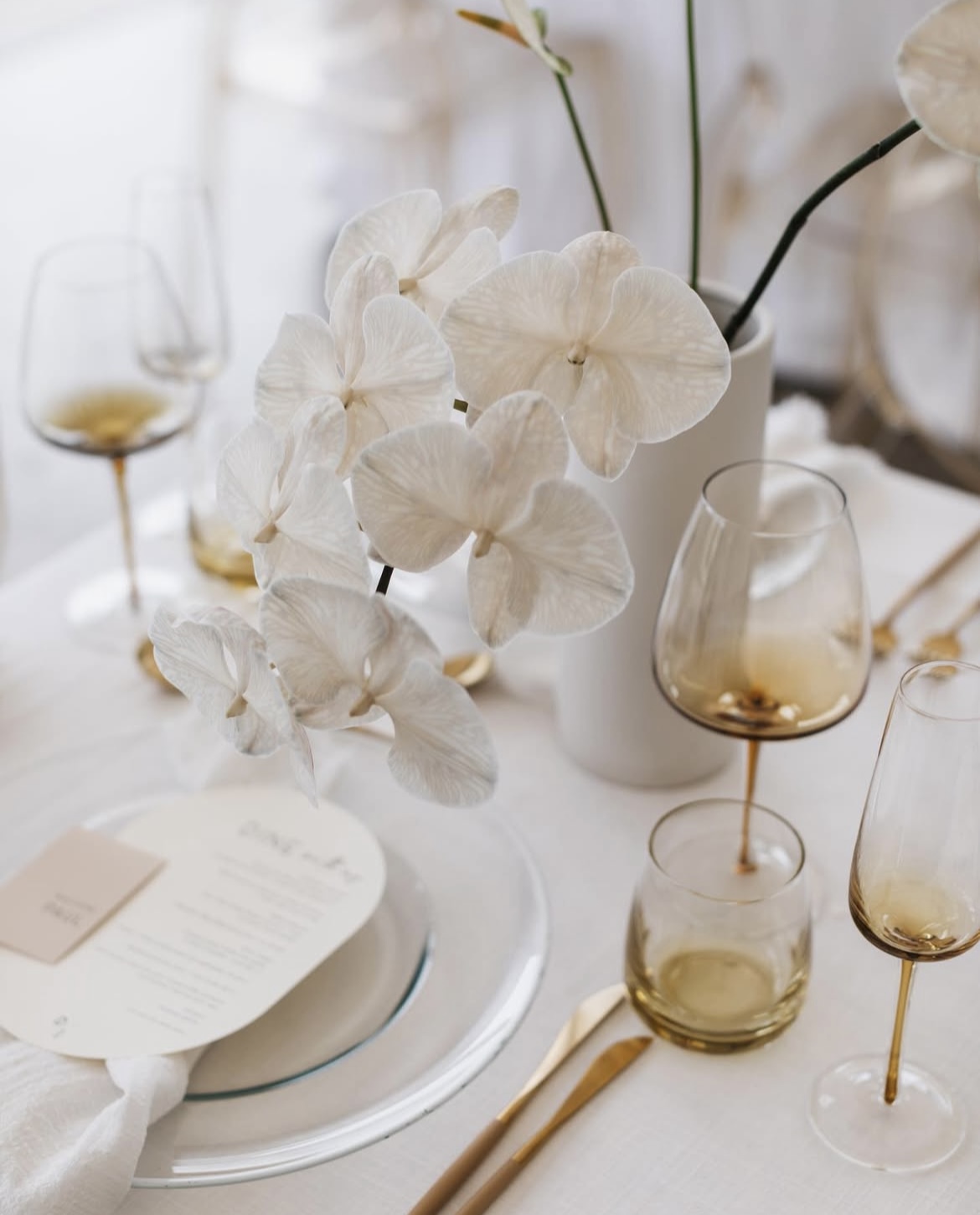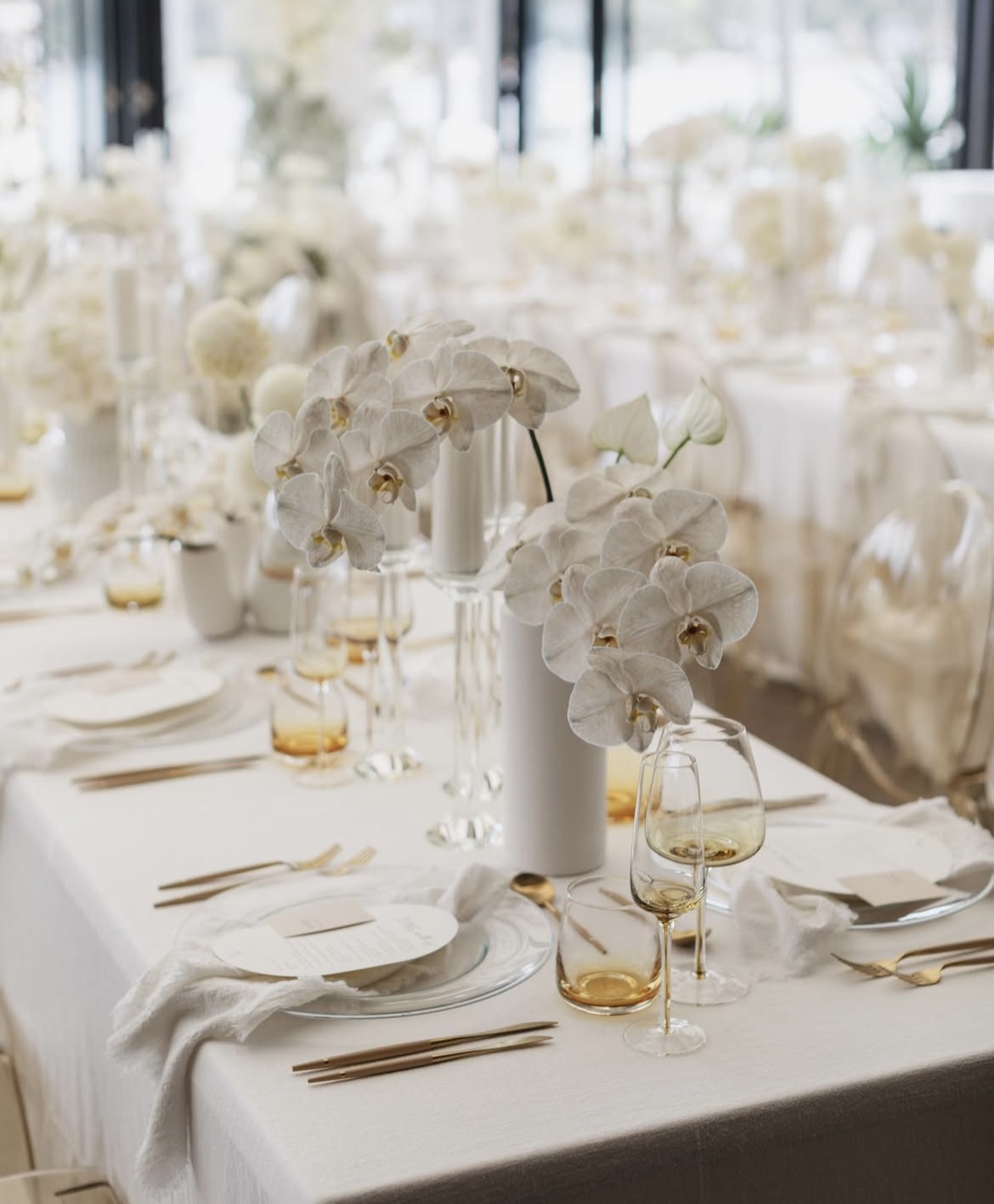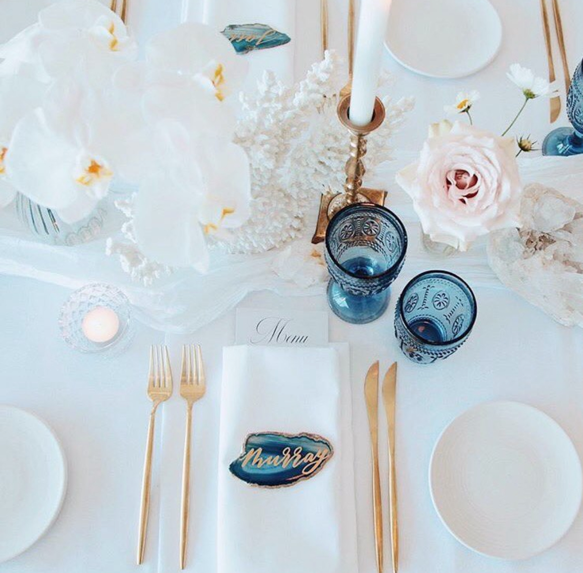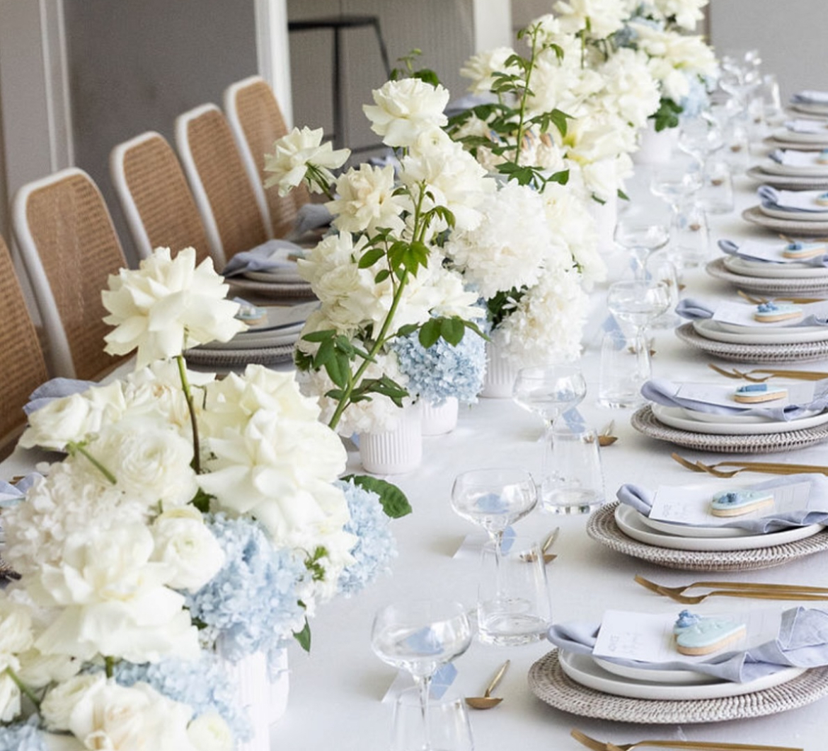 From delicate flowing fabrics and organic floral arrangements to textured tableware that mimics seashells, every detail within the table setting is designed to reflect the calming beauty of the coast.