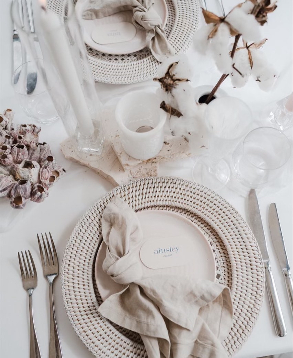 Our styled tableware packages have been thoughtfully curated by our team using coordinating tableware, linen and decor from our hire range