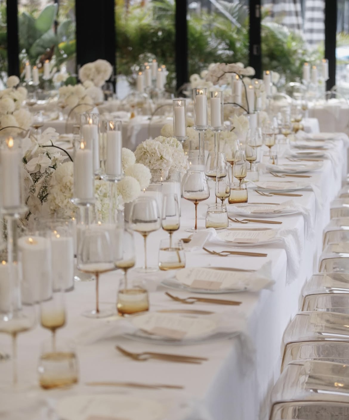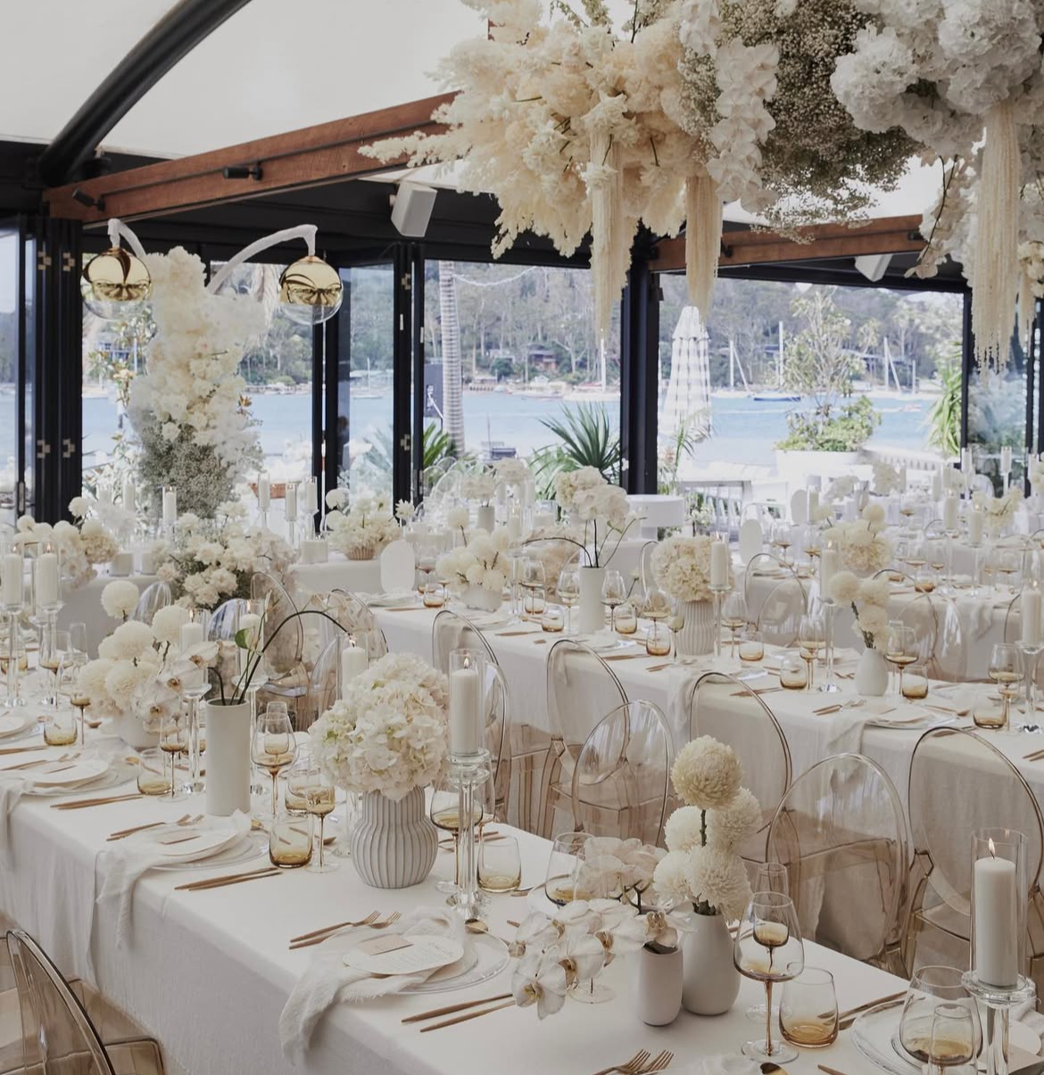 Coastal wedding styling embraces soft, seaside colour palettes – think crisp whites, sandy neutrals, ocean blues, and seafoam greens paired with natural textures like rattan, whitewood and stone.