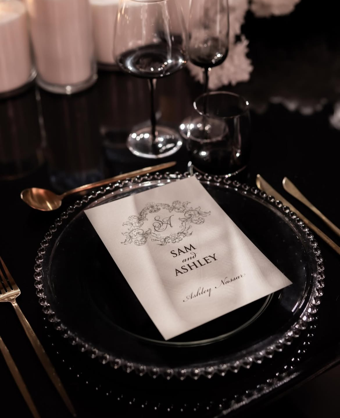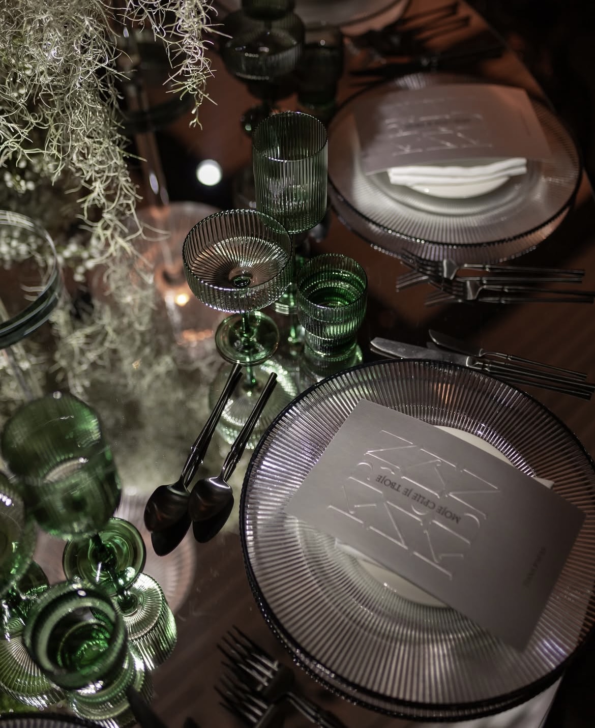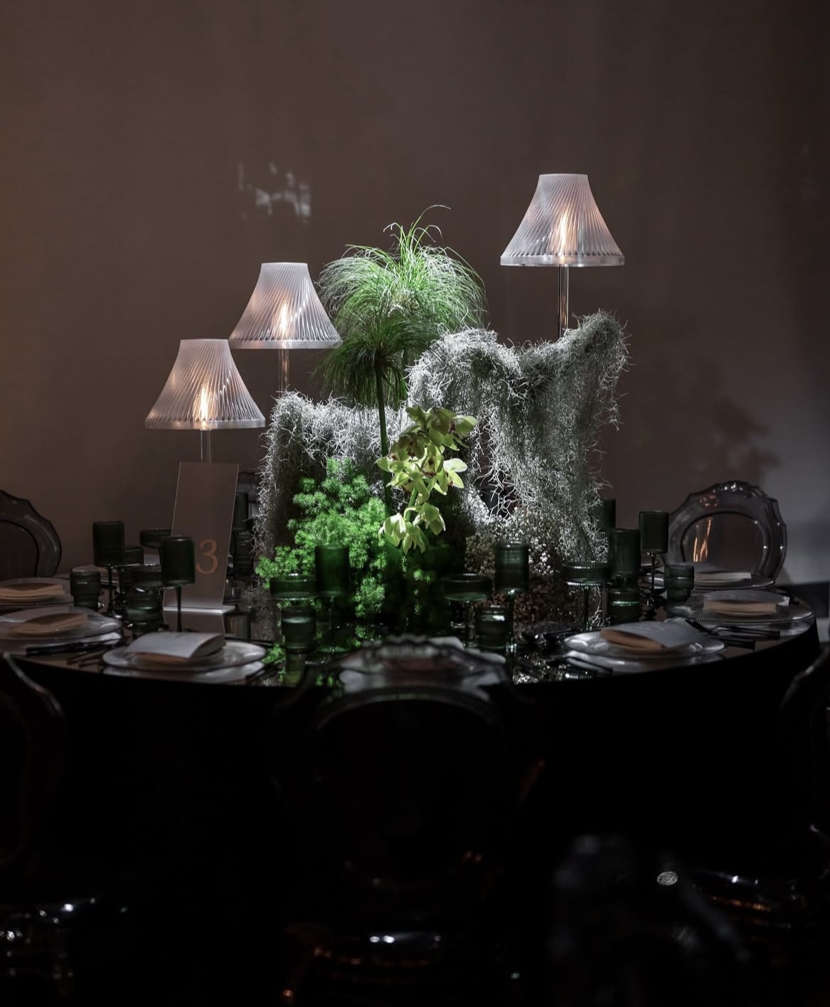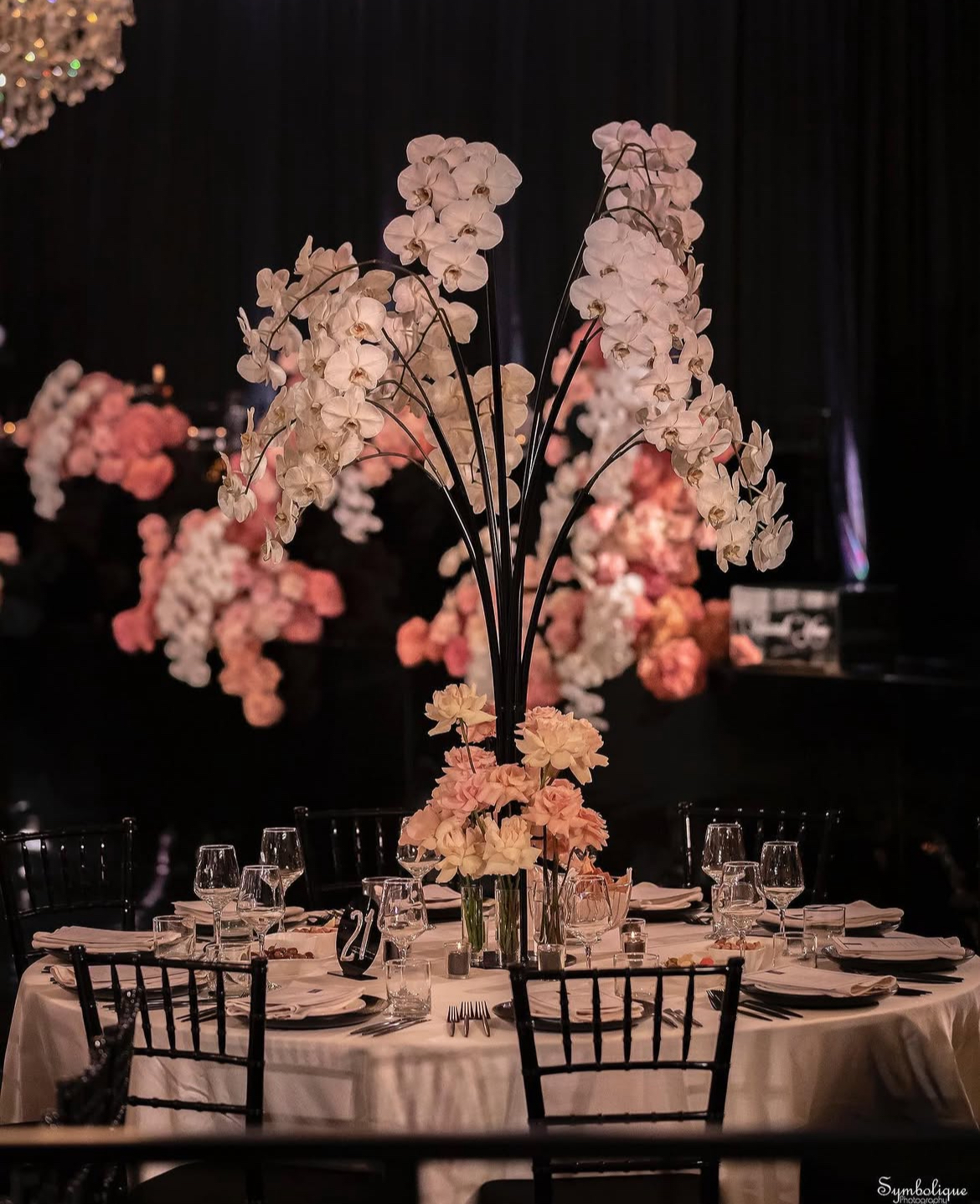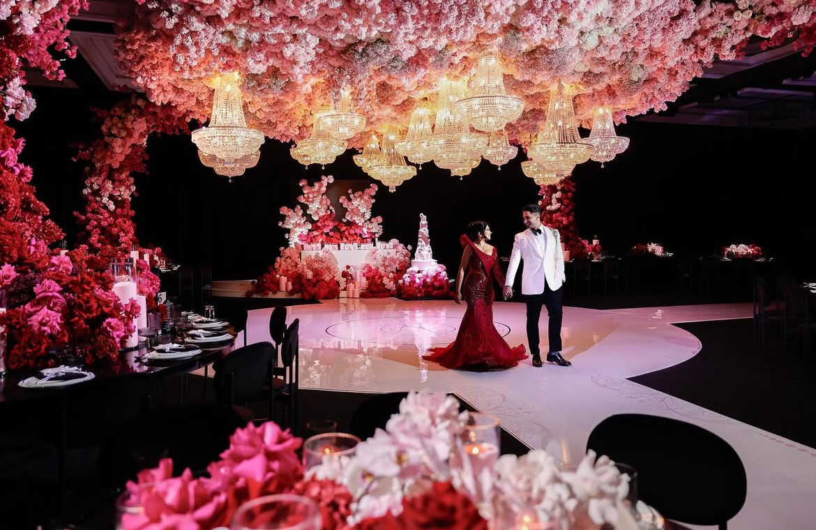 Expect glittering crystal chandeliers, ornate candelabras, and lavish floral arrangements in full bloom. Statement tables with mirrored or bold finishes are styled to perfection with elegant charger plates, sparkling cutlery, and crystal-cut glassware, creating a visually striking tablescape.