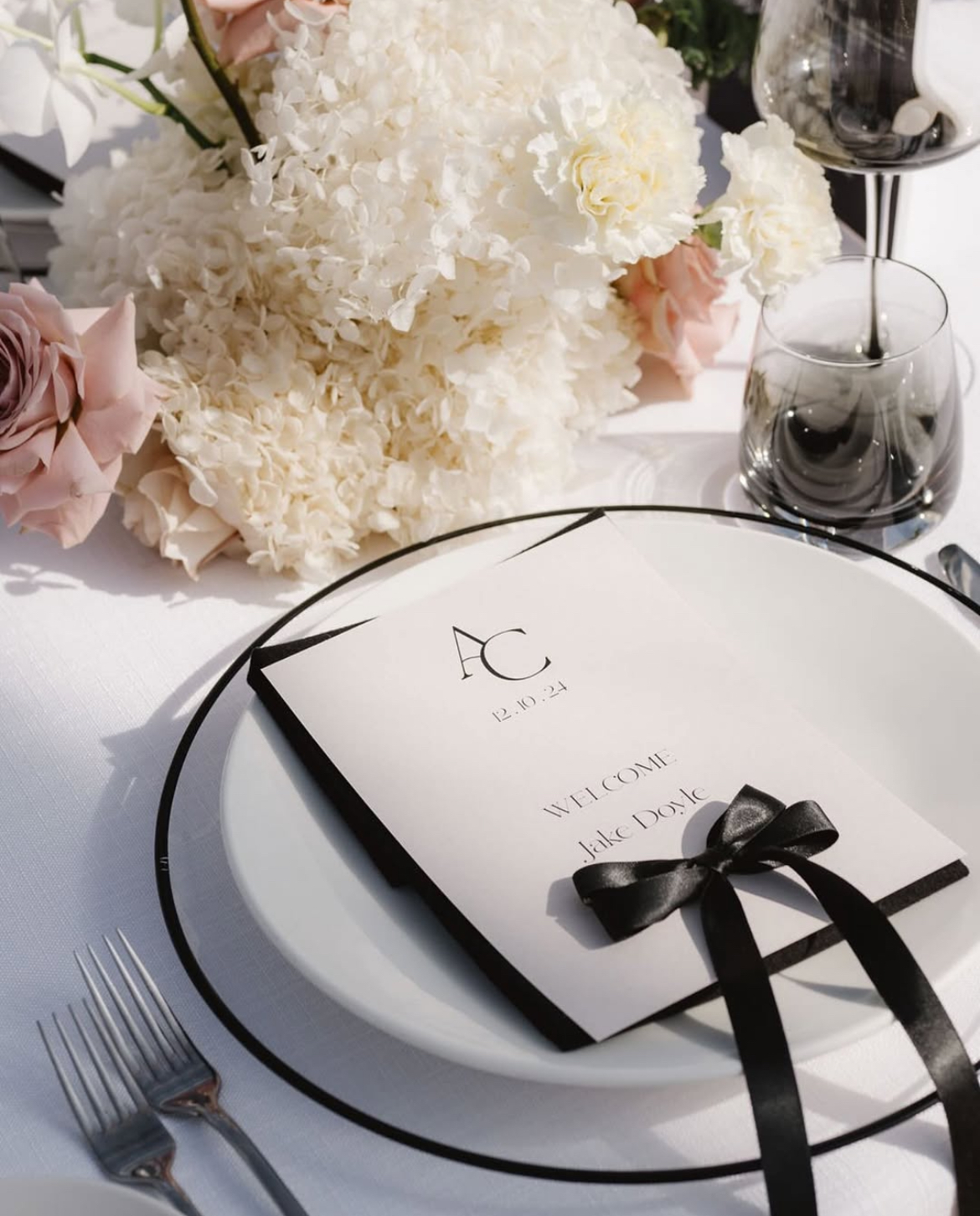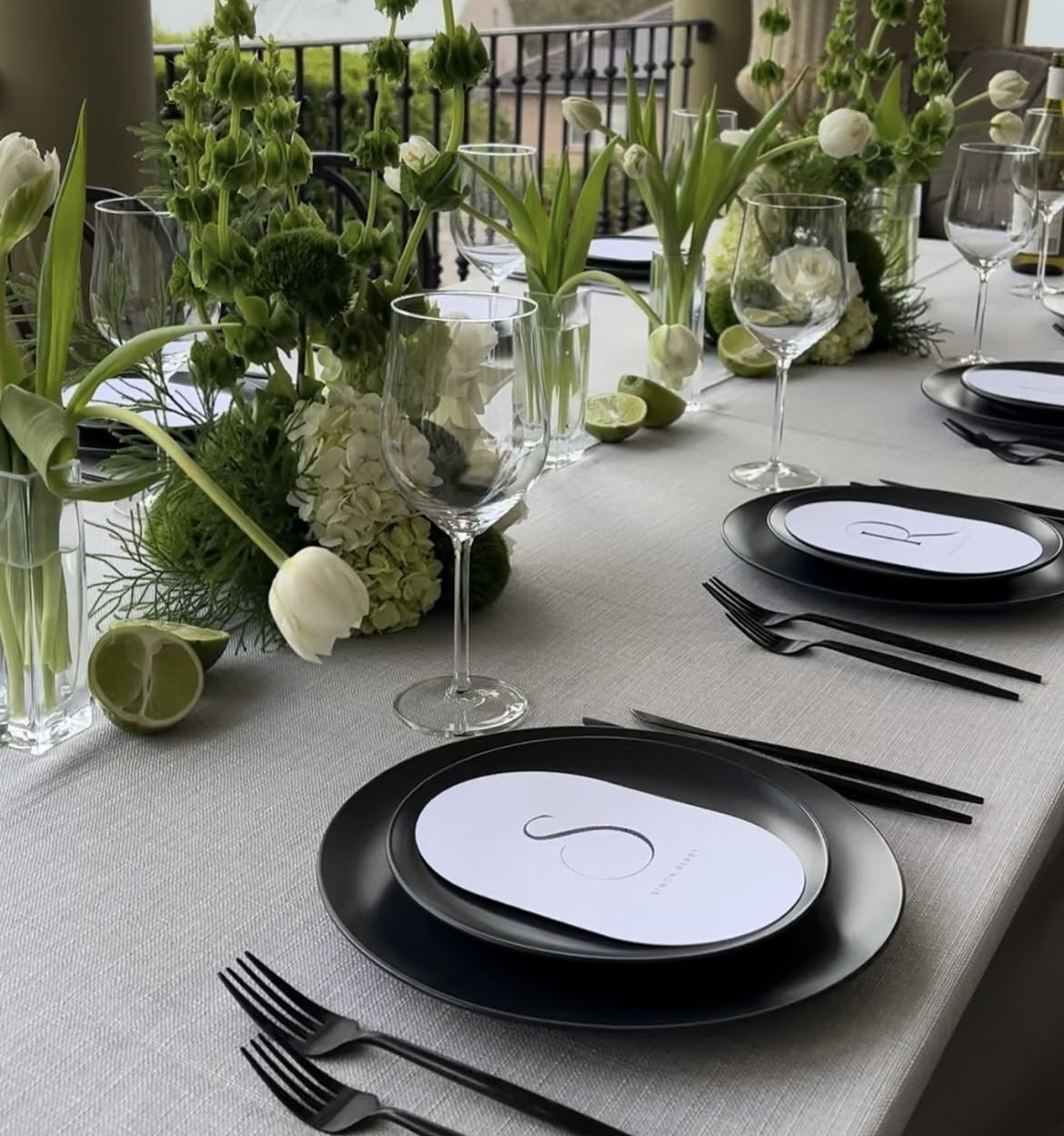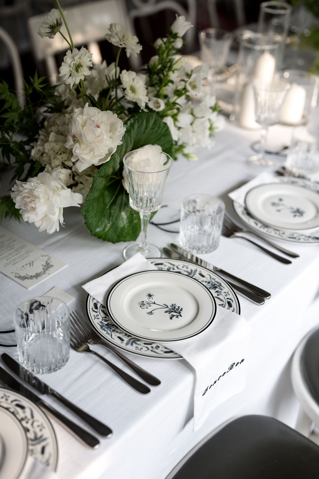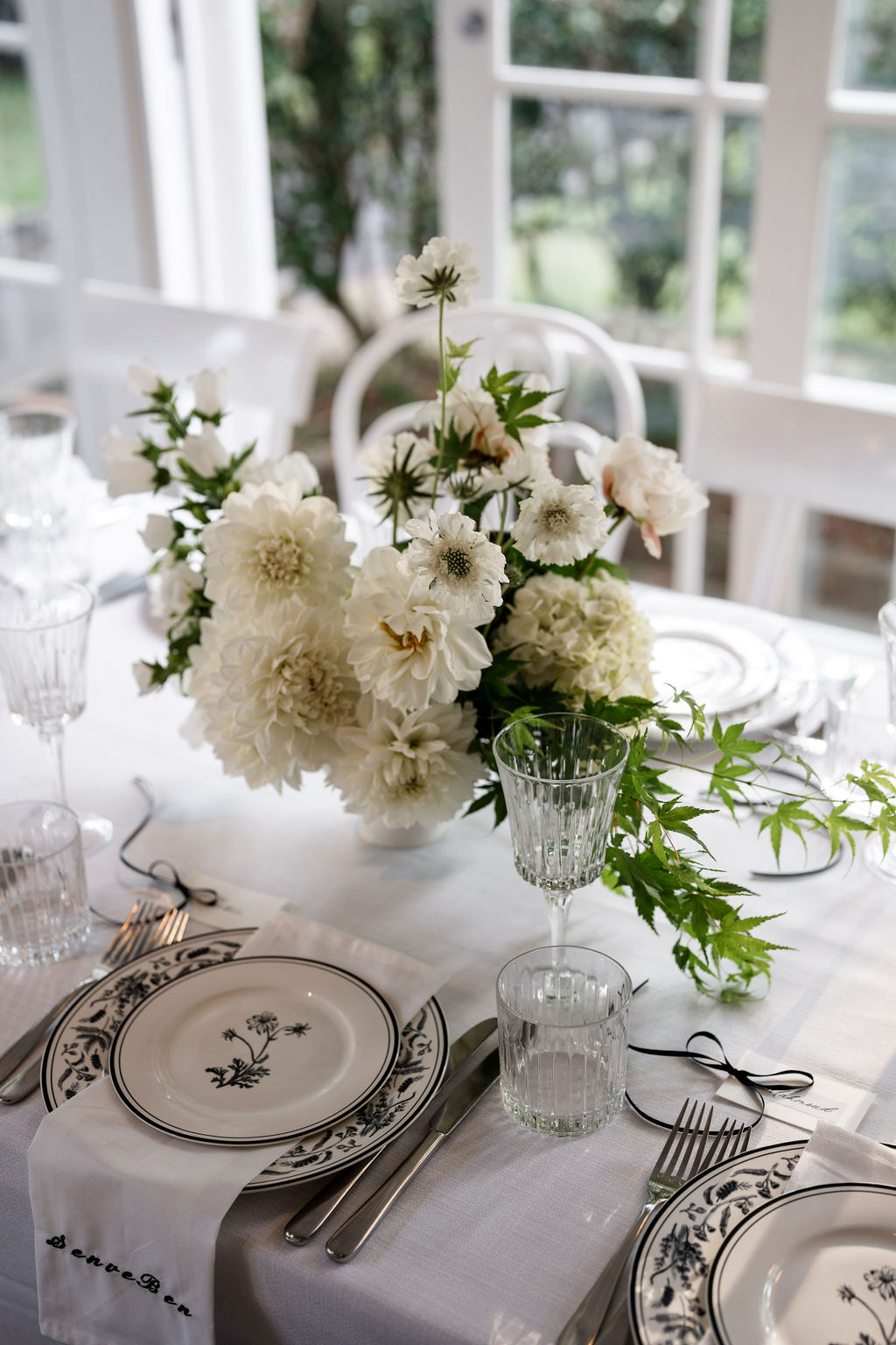 Tablescapes often feature crisp white linens, minimalist floral centrepieces and sleek modern tableware that complement rather than clutter.